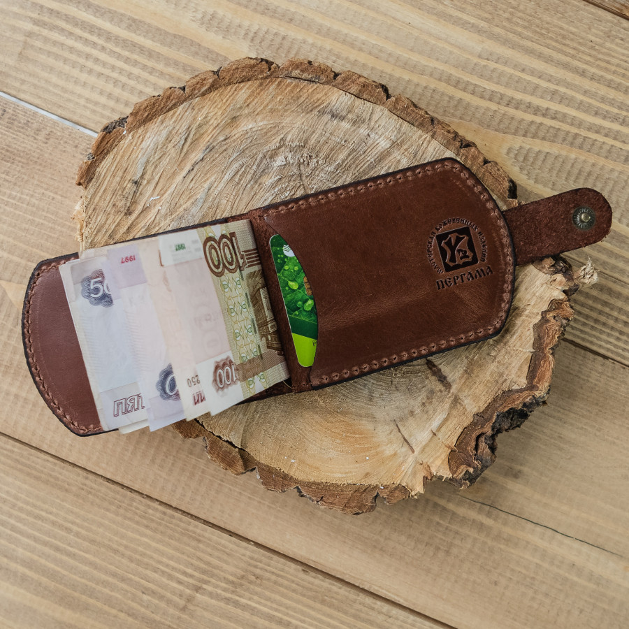 Купюродержатель из натуральной кожи с тиснениями на охотничью тематику. Выполнен из натуральной кожи, качественная фурнитура.