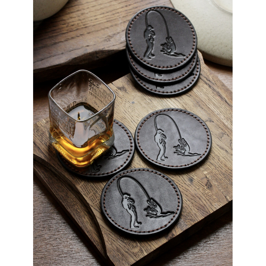 Элегантные и брутальные подставки под стаканы из толстой натуральной кожи станут стильным и практичным аксессуаром для дома, офиса или дачи.
